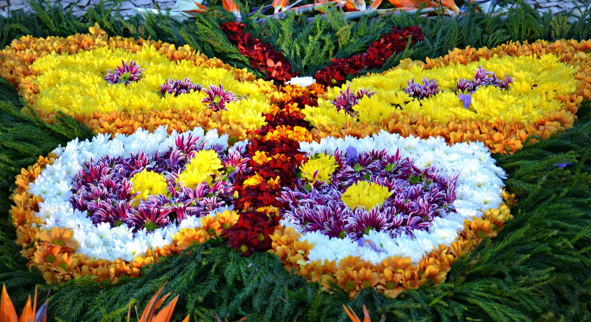 O den později přichází pravý opak této křehké chvíle – velkolepý květinový průvod. Ulice zaplní alegorické vozy pokryté tisíci čerstvých květin, tanečníci v bohatých kostýmech a hudba, která rozezní celé město. Atmosféra je strhující. Lidé tleskají, usmívají se na sebe navzájem a na chvíli máte pocit, že se zastavil čas.